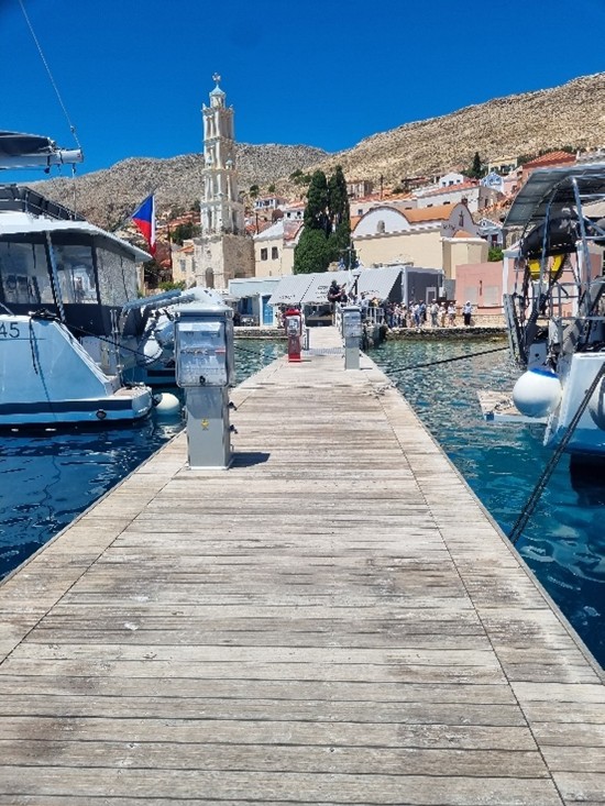 Posteriormente, en la isla de Chalki, se presentaron otras iniciativas de gran interés, como el centro de buceo Chalki Dive Center, un moderno pantalán accesible para personas con movilidad reducida y un innovador servicio de taxi acuático que cubre tanto rutas regulares como necesidades de emergencia.