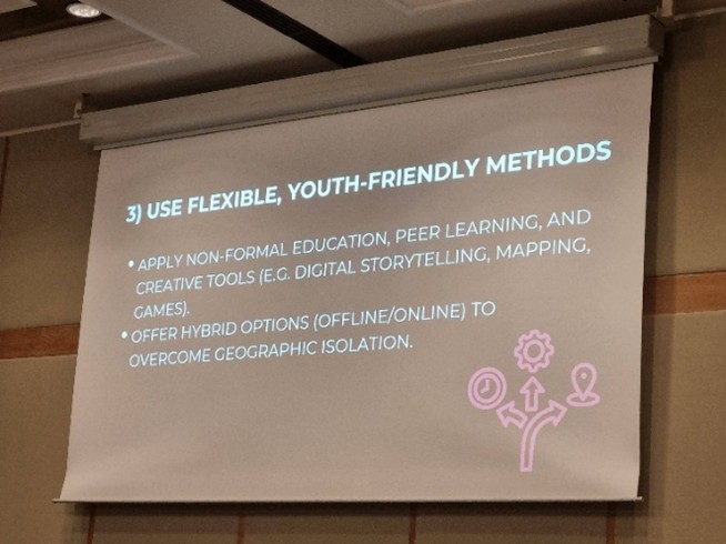 Durante los talleres de la tarde se exploraron métodos innovadores para fomentar el liderazgo juvenil: hackatones sostenibles, laboratorios de políticas, dinámicas de educación no formal, juegos, narrativas digitales o modelos híbridos de participación. El mensaje fue claro: los jóvenes no quieren ser únicamente consultados, quieren participar y liderar los procesos de cambio.